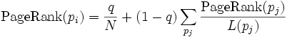 PR(A) =(PR(B) /L(B)+PR(C) /L(C)+PR(D)/L(D)+...+PR(N)/L(N))q+1-q