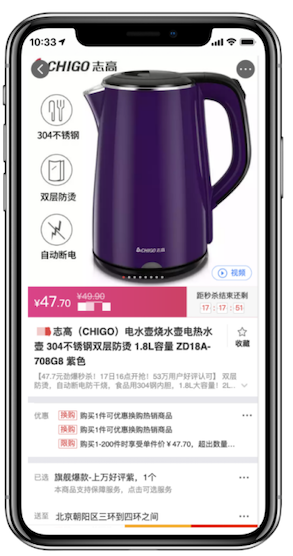 畫質超清,有歷史售價、優惠活動倒計時、視頻展示功能,評論區有標簽分類和好評度為用戶提供參考