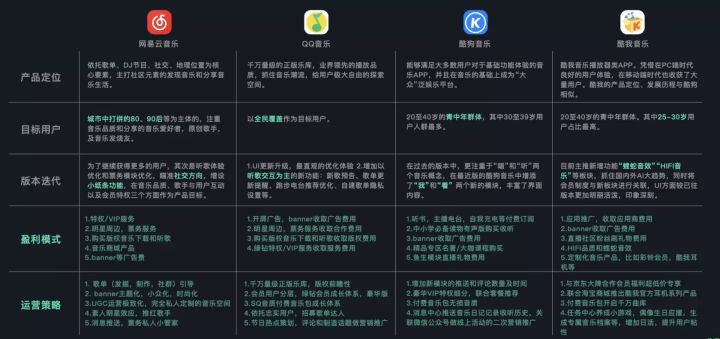 直接競品和我們的產品服務的是同一類用戶、滿足同一種需求,比如QQ音樂和網易云音樂。