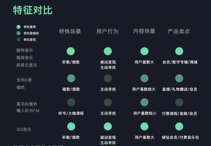 如果我們關注的是產品的關鍵特征,我們可以從使用場景、用戶行為、內容體量、產品賣點來分析。
