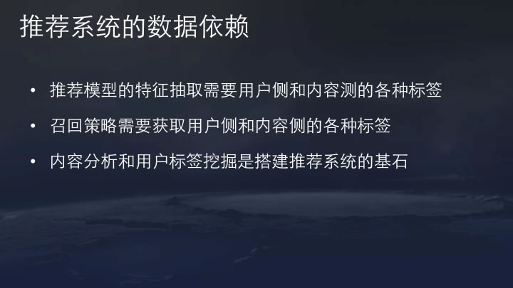 內(nèi)容分析和用戶標簽是推薦系統(tǒng)的兩大基石。內(nèi)容分析涉及到機器學習的內(nèi)容多一些,相比而言,用戶標簽工程挑戰(zhàn)更大。