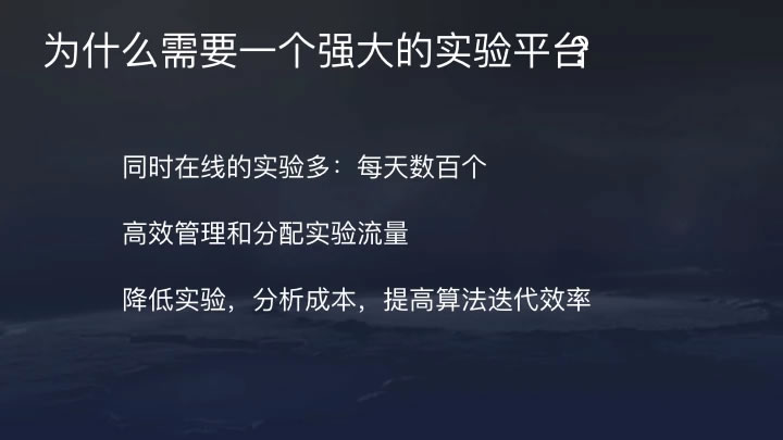 強大的實驗平臺非常直接的優(yōu)點是,當同時在線的實驗比較多時,可以由平臺自動分配流量,無需人工溝通,并且實驗結(jié)束流量立即回收,提高管理效率。這能幫助公司降低分析成本,加快算法迭代效應,使整個系統(tǒng)的算法優(yōu)化工作能夠快速往前推進。