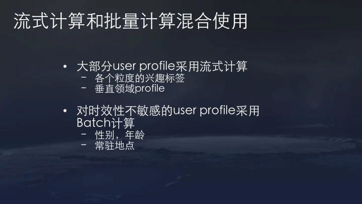 當然,我們也發(fā)現(xiàn)并非所有用戶標簽都需要流式系統(tǒng)。像用戶的性別、年齡、常駐地點這些信息,不需要實時重復計算,就仍然保留daily更新。